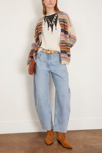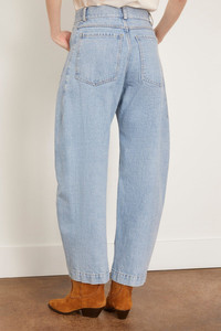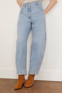 The Rachel Comey Keenan Pant in Light Wash is a sculpted wide-leg denim pant with five-pocket styling and a relaxed fit. Features a high waist and button fly closure. Our denim collection is made in Los Angeles using premium Japanese denim. Each style is crafted in limited quantities in partnership with small, family-run factories. FIT DESCRIPTION MODEL MEASUREMENTS - Fits true to size, take your normal size - 100% Cotton - Zipper and button fly - Front and rear slip pockets - Made in USA - Kortney is wearing a size 0 - Bust: 29" - Waist: 22" - Hips: 34“ - Height: 5’10”