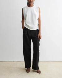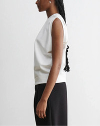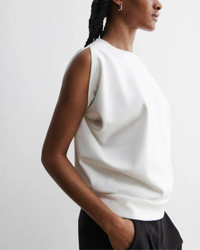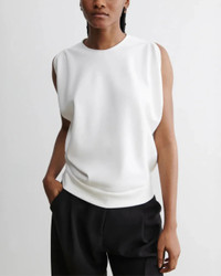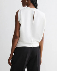 FINAL SALE The Papen Top in White by Rachel Comey is a sleeveless, round neck top featuring a relaxed boxy fit with banded hem. - 60% Polyester, 32% Rayon, 8% Spandex - Made in USA - Button back closure - #251W-300-T1303