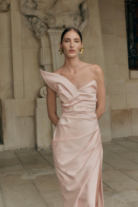 Classic and refined, the Anders dress takes signature Rachel Gilbert detailing in structure and hand placed draping to create a timeless evening-wear investment. Defined by a sculptural neckline complete with internal corsetry and waist tapes to instill confidence and support when worn. Details & Fit Runs true to size, we recommend taking your usual size. Model is 5'10 and wears a RG 1 = US 4 = AU/UK 8. - Column silhouette - Midi length - Shaped neckline - Strapless - Internal boning in bodice - Invisible zip Fabric & Care Silk Wool Main: 52% Silk 48% Wool Lining: 100% Polyester Dry clean only See sewn in label for further care instructions