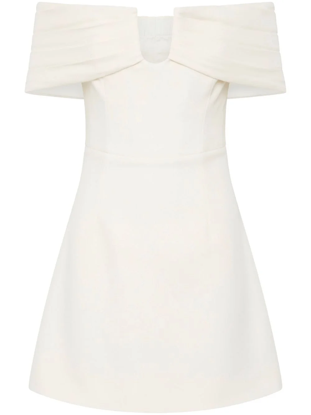 Aven mini dress Highlights - Ivory white - Concealed rear zip fastening - U-neck - Off-shoulder - Straight hem Imported Composition Viscose 100%
