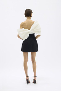 The Birdie is picture-perfect for upcoming bridal celebrations as well as the dance floor after the ceremony. Designed with a bell shaped skirt, the fitted bodice has a fold-over neckline that shows the contours of your collarbones. Impress guests with the dialed-up bow at the back. - Fully boned - Elastic waist tape - Fitted bodice - Side zip closure - Bow at back - Mini length - Silicone taping on the neckline for a secure hold - This style fits true to size Size and Fit Runs true to size, we recommend taking your usual size. Model is 5'10 and wears a Rachel Gilbert Size 1 [AU/UK 8 | US 4]. Fabrication Stretch Taffeta 45% Nylon 50% Polyester 5% Elastane Care Dry Clean Only See sewn in label for further care instructions