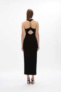 An update to our best-selling style the Blaine dress features an internal corset and a halter neckline with a metal open back detail. Complete with a thigh split. Size and Fit Runs true to size, we recommend taking your usual size. Model is 5'9 and wears a Rachel Gilbert Size 1 [AU/UK 8 | US 4] Fabrication Crepe 71% Acetane 29% Polyester Custom designed trim. Trim is not removable. Care Dry clean only See sewn-in label for care instructions