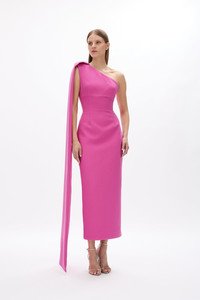 The Clara Dress features a removable and versatile necktie that can be styled in various ways, offering a personalised touch. Crafted with stretch crepe for comfort and ease of wear, it’s designed with an internal corset and waist tapes to define shape and provide exceptional support. A sophisticated and adaptable piece perfect for any occasion. Details & Fit Runs true to size, we recommend taking the size closest to your waist measurement. Model is 5'10 and wears a RG 1 = US 4 = AU/UK 8. - Lightly boned internal bodice - Internal elastic waistband - Gripper tape inside back neck for secure hold - Back zip - Back split - Neck sash is detachable and can be worn multiple ways - Slight stretch in fabric Fabric & Care Moss Crepe Main: 97% Polyester 3% Elastane Lining: 85% Acetate 15% Polyester Dry clean only See sewn in label for further care instructions