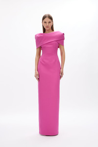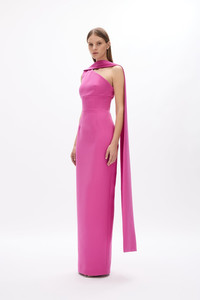The Clara Gown features a removable and versatile necktie, allowing the wearer to drape it in a variety of styles for a personalised look. Crafted with stretch fabric, it offers ease of wear and comfort while maintaining its elegant form. The internal corset and waist tapes provide structure, defining the shape and offering exceptional support. A sophisticated and adaptable piece perfect for any occasion. Details & Fit Runs true to size, we recommend taking the size closest to your waist measurement. Model is 5'10 and wears a RG 1 = US 4 = AU/UK 8. - Lightly boned internal bodice - Internal elastic waistband - Gripper tape inside back neck for secure hold - Back zip - Back split - Neck sash is detachable and can be worn multiple ways - Slight stretch in fabric Fabric & Care Moss Crepe Main: 97% Polyester 3% Elastane Lining: 85% Acetate 15% Polyester Dry clean only See sewn in label for further care instructions