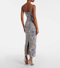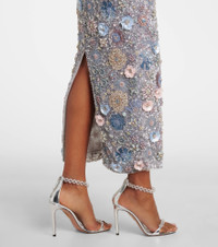Embellished floral-appliqué midi dress