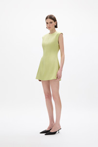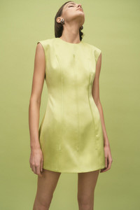 Details & Fit This style is true to size; we recommend using your bust, waist, and hip measurements to select the size that most closely matches our size chart.Model is 5'9 and wears size RG 0 / US 2 - Flared Mini silhouette - Raised neckline - Designed to sit slightly off body - Softly cinched waistline - Exposed vertical binding sewn externally - Fully lined Fabric & Care Fabrication: Satin - 82.3% Acetate, 17.7% Polyester Care: Dry Clean Only Crafted from Satin, the Hallie Mini offers a soft sheen and fluid drape, providing lightweight structure to support the hand-placed boning. The fabric maintains shape while allowing comfortable movement, ensuring a polished, elevated finish.
