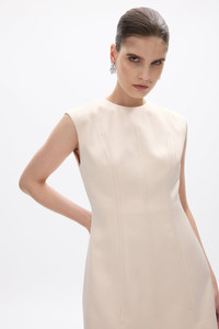 Details & Fit This style is true to size; we recommend using your bust, waist, and hip measurements to select the size that most closely matches our size chart.Model is 5'8 and wears size RG 0 / US 2 - Flared Mini silhouette - Raised neckline - Designed to sit slightly off body - Softly cinched waistline - Exposed vertical binding sewn externally - Fully lined Fabric & Care Fabrication: Satin - 82.3% Acetate, 17.7% Polyester Care: Dry Clean Only Crafted from Satin, the Hallie Mini offers a soft sheen and fluid drape, providing lightweight structure to support the hand-placed boning. The fabric maintains shape while allowing comfortable movement, ensuring a polished, elevated finish.
