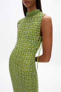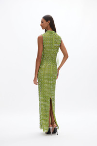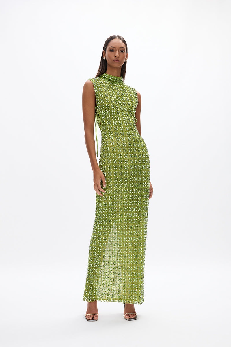 Discover what is signature to Rachel Gilbert in the Indi Gown. An all over hand embellished gown each hand placed and sewn to create a wearable art form. Balanced with subtle side cut-outs met with self-tie details and a raised neckline. Designed for the events dress coded as black tie, be the best dressed guest in the Indi. Size and Fit Runs true to size, we recommend taking your usual size. Model is 5'10 and wears a RG 1 = US 4 = AU/UK 8. - Hand embellished - Full length column silhouette - Mock neckline - Sleeveless - Side lacing - Adjustable elastic waist tape to cinch in the waist - Back split - I - nvisible zip Fabrication Embellished Main: 100% Nylon Tulle Lining: 100% Nylon Care Dry Clean Only See sewn in label for further care instructions