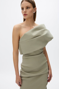A modern adaptation of a one-shoulder gown, the Kat Gown features a voluminous, relaxed one-shoulder silhouette balanced by an internally structured fitted waistline to define shape. This silhouette balances paired-back exaggeration with a timeless approach by offering a quintessential event piece we will never fail to reach for. - Fitted bodice with internal boning - A slim fit silhouette - This fabric has stretch - Adjustable elastic waist tape to cinch in the waist - Silicone taping on the inside of the bust for a firm hold on the body - Elastic is stitched in to the sleeve for a close fit - This style can be hemmed - This style fits true to size Size and Fit Runs true to size, we recommend taking your usual size. Model is 5'10 and wears a Rachel Gilbert Size 1 [AU/UK 8 | US 4] Fabrication Stretch Taffeta 45% Nylon 50% Polyester 5% Elastane Care Dry Clean Only See sewn in label for further care instructions