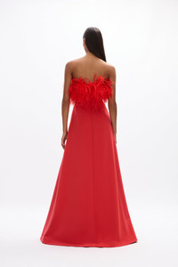 Available for pre-order, shipping mid-October 2024. A seasonal update to our best-selling and signature silhouette, the Link Gown welcomes a festive hue of bright red. Designed for the moments celebrated this holiday season adorned with signature feather detailing across the bust, an A-line skirt with side split and complete with internal corsetry. Size and Fit Runs true to size, we recommend taking your usual size. Model is 5'9 and wears a Rachel Gilbert Size 1 [AU/UK 8 | US 4]. - Light stretch crepe fabrication - Fitted bodice - Full length flared silhouette - Strapless - Fully boned - Adjustable elastic waist tape to cinch in the waist - Silicone taping on the inside of the bust for a firm hold on the body - Ostrich feather detail - Invisible zip Fabrication Light Stretch Crepe Main: 93% Polyester 7% Spandex Lining: 100% Polyester Care Dry Clean Only See sewn in label for further care instructions