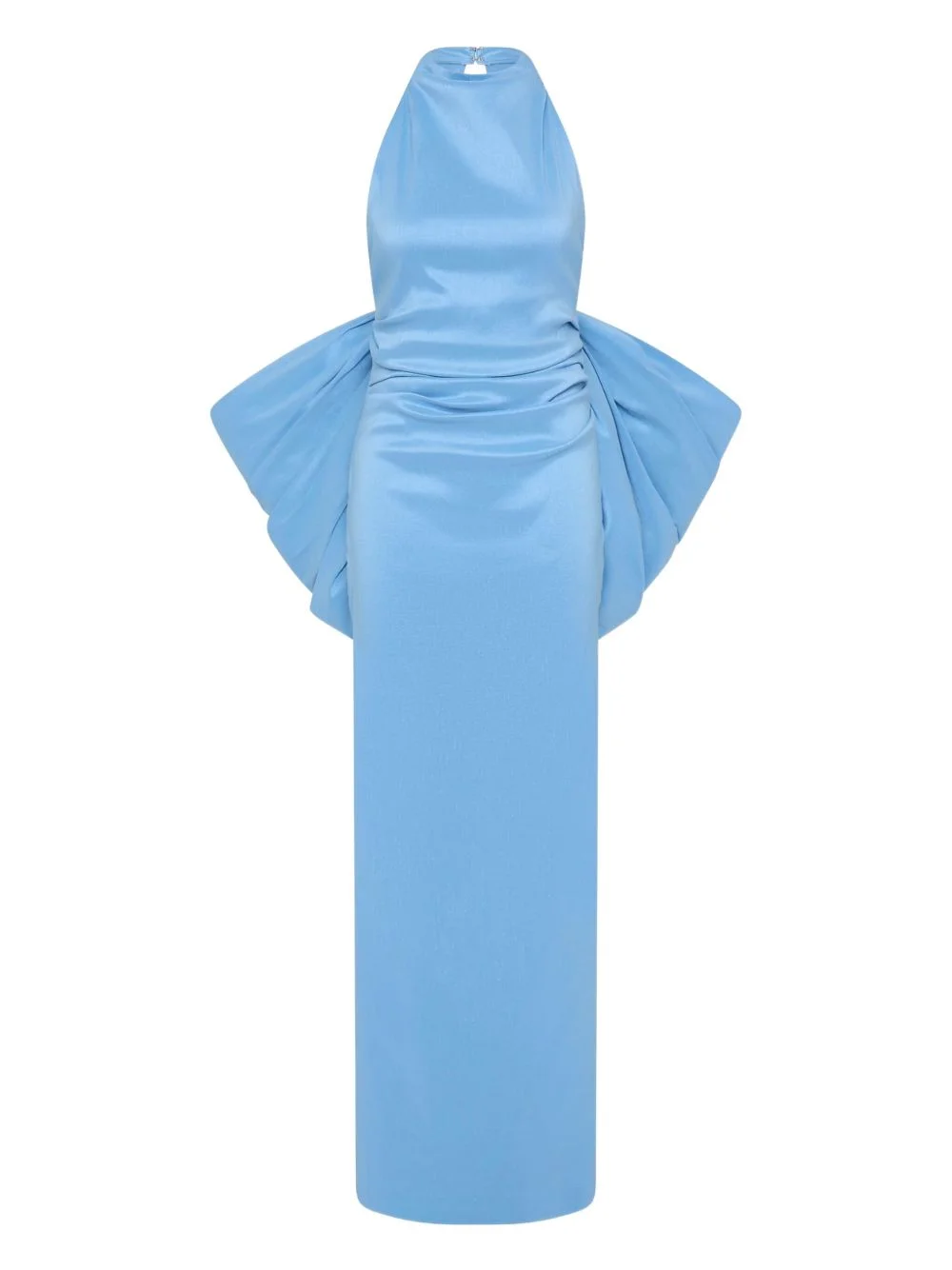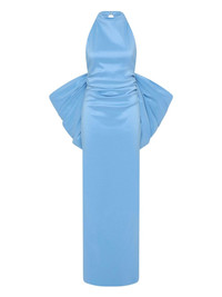 Lottie bow-detail halterneck gown Highlights - Light blue - Halterneck - Open back - Draped bow detail - Floor-length skirt Imported Composition Nylon 50%, Polyester 50% Washing instructions Dry Clean Only