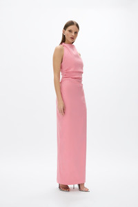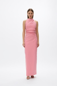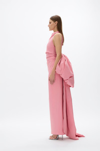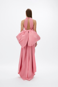 The ultimate wedding guest silhouette, the Lottie features a voluminous, detachable bow adorned on a column silhouette. Cinched through the waist with internal waist-tapes and corsetry to create a natural hour-glass shape. Size and Fit Runs true to size, we recommend taking your usual size. Model is 5'10 and wears a RG 1 = US 4 = AU/UK 8. - Looser fit through the bust - Column - silhouette - Full length - Halter neck - Detachable bow and train - Lightly boned at waist - Invisible zip Fabrication Taffeta Main: 45% Nylon 50% Polyester 5% Elastane Lining: 100% Polyester Care Dry clean only See sewn in label for further care instructions