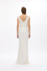 Details & Fit Form fitting silhouette. Model is 5'10 and wears a RG 1 = US 4 = AU/UK 8 • V neckline. • Hand embellished with glass beads. • Fully lined on ivory base. • Fitted through the bust, waist and hips. • Relaxed from the hip down. • Back zip. Fabric & Care Hand Beaded 100& Nylon Tulle Dry clean only See sewn-in label for care instructions