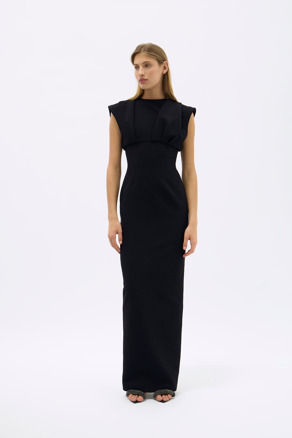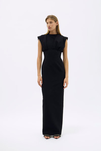 The Maggie gown is everything and more. Sculpted with a ruched bodice with cap sleeves and a flattering empire waistline, it falls to the floor dramatically. You’ll wear the modern classic on repeat for all those upcoming events you have planned. - Fully lined - Light boning below the bust - Some stretch in fabric - V back detail - Back split - Back zip closure - Column skirt silhouette - Maxi length - This style fits true to size Size and Fit Runs true to size, we recommend taking your usual size. Model is 5'10 and wears a Rachel Gilbert Size 1 [AU/UK 8 | US 4]. Fabrication Stretch Crepe 97% Polyester 3% Elastane Care Dry Clean Only See sewn in label for further care instructions