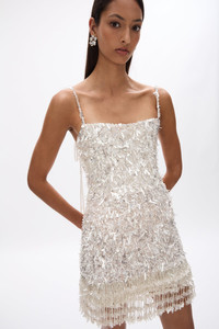 Exude Hollywood-level glamour at the next invitation with the Posie. Designed with a square neckline, it’s scattered in a myriad of sequins for a metallic sheen. The mini is extended with a veil of tulle that’s striped with sparkling embellishment. - Hand embellished detail - Fully boned bodice - Lining is high stretch for sculpting - Internal waist tape to cinch - Self tie straps - Mini length - Tasseled hem edge - This style fits true to size Size and Fit Runs true to size, we recommend taking your usual size. Model is 5'10 and wears a Rachel Gilbert Size 1 [AU/UK 8 | US 4]. Fabrication Embellished Tulle 100% Nylon Care Dry Clean Only See sewn in label for further care instructions