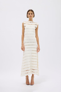 The Quinlan dress makes an avant-garde outfit choice for the next invitation. It’s detailed with cutouts for an innovative contrast and has a high neckline. The ensemble will prove must-have worthy, so explore other colourways in the inspiring edit. - Diamond shaped cutout knit - Has separate slip - Fitted to the waist - Boat Neck shaped neckline - Recommend storing flat - This style fits true to size Size and Fit Runs true to size, we recommend taking your usual size. Model is 5'10 and wears a Rachel Gilbert Size 1 [AU/UK 8 | US 4]. Fabrication Knit 65% Viscose 35% Nylon Care Dry Clean Only See sewn in label for further care instructions