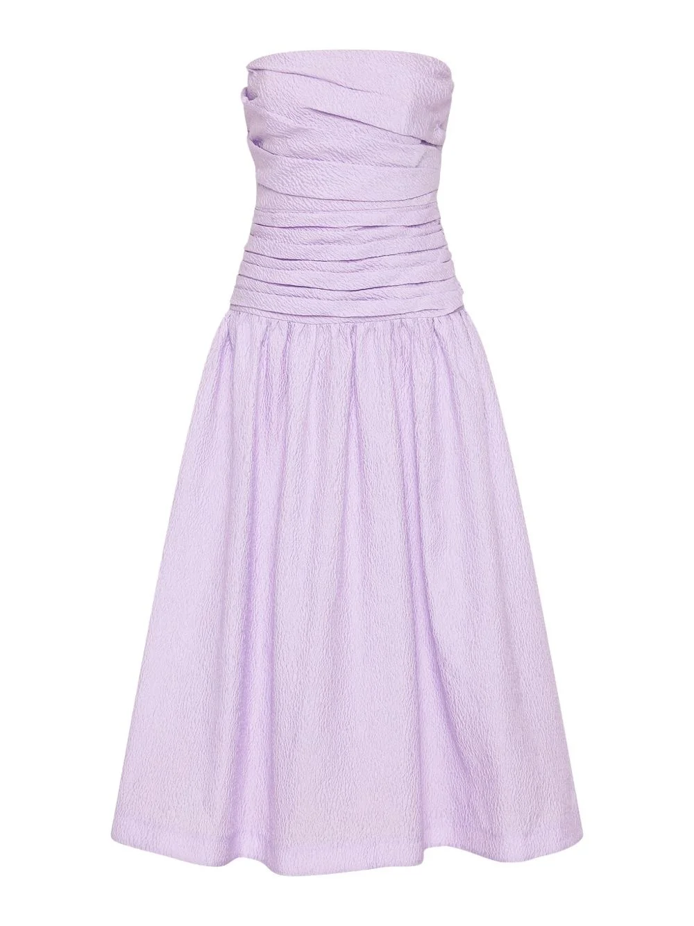 ruched strapless dress Highlights - Lilac - Strapless design - Ruched bodice - Flared skirt - Concealed zip fastening Imported Composition Polyester 100%