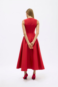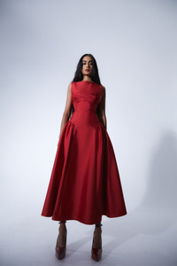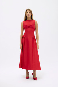 The Sawyer is the dress to match your nail polish, arriving in the ultimate shade of red. It’s designed with a boatneck and fitted bodice which leads to the rich fabric noticeably flaring from the sides. - Fully lined - Light internal boning underneath the bust - Classic fitted bodice with full A-line skirt - Gathers at the hips - Contrast satin drape - Can be hemmed by a professional seamstress - Centre back zip closure - Fabric has no stretch - Recommend taking the size closest to bust and waist Size and Fit Runs true to size, we recommend taking the size closest to bust and waist measurements. Model is 5'10 and wears a Rachel Gilbert Size 1 [AU/UK 8 | US 4]. Fabrication Silk Wool 52% Silk 48% Wool Care Dry Clean Only See sewn in label for further care instructions