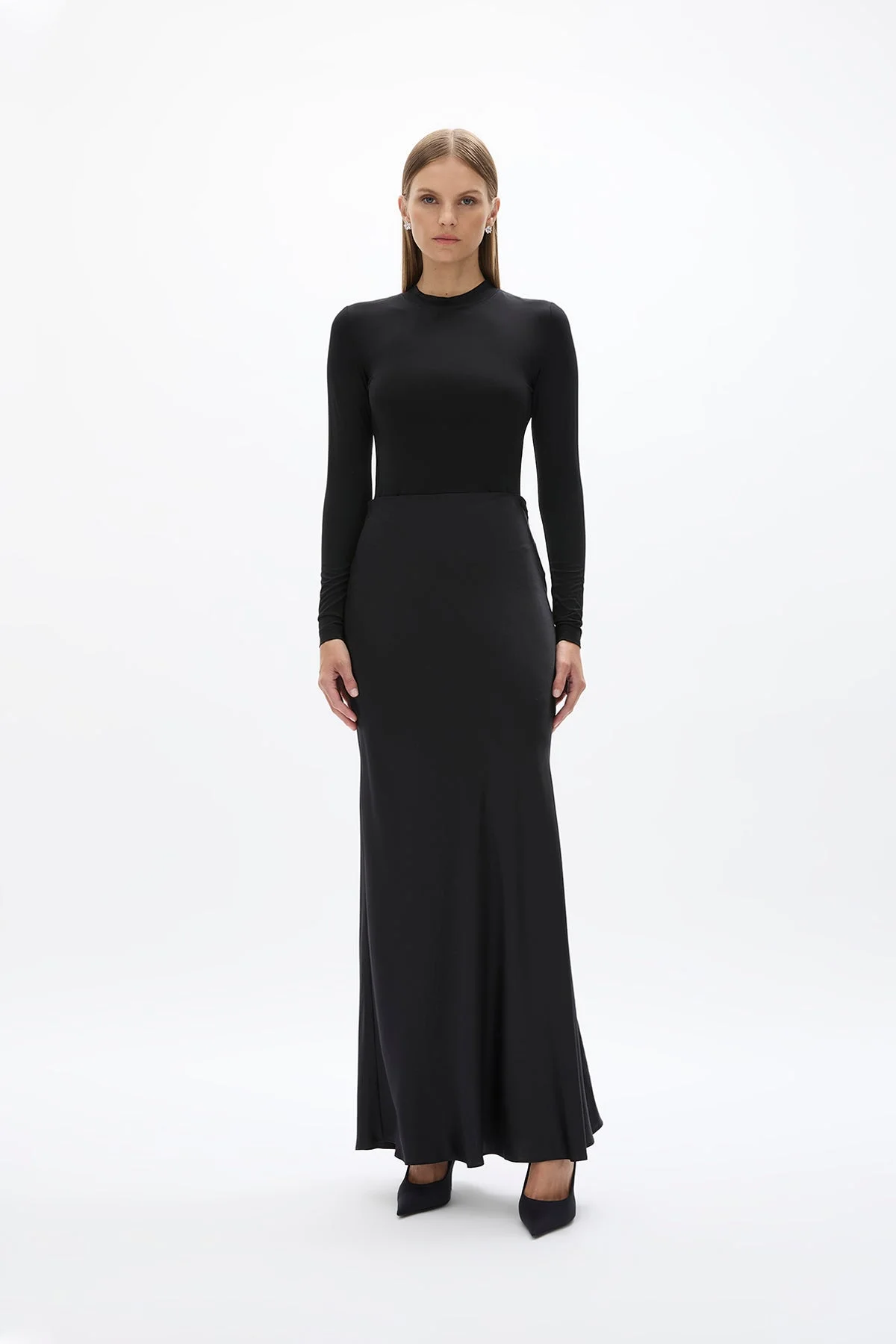 A full-length skirt cut on the bias, featuring a back zip closure. A timeless staple for any wardrobe. - This is a slim relaxed fitting silhouette - Non stretch fabric - This features a fixed waistband - This silhouette runs true to size - This style runs small, we recommend sizing up Size and Fit We recommend sizing up Model is 5'9 and wears a Size 1 Fabrication Silk Satin 100% Silk Care Dry Clean Only See sewn in label for further care instructions
