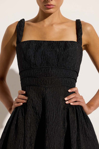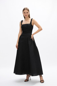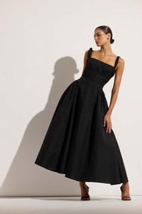 A voluminous, feminine style, the Sophia Strap Dress is a must have for every wardrobe. Featuring a cinched waist alongside a full skirt to create definition and shape. Size and Fit Runs true to size, we recommend taking your usual size. Model is 5'9 and wears a Rachel Gilbert Size 1 [AU/UK 8 | US 4]. - Twisted strap detail - A fit and flare silhouette - Square neckline - Mid length - Voluminous skirt - Back zip closure - No stretch in fabric Fabrication Textured Jacquard Main: 56% Polyester 44% Nylon Care Dry Clean Only See sewn in label for further care instructions