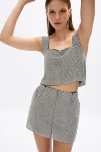 A mini skirt featuring a glow-mesh style embellishment. The Thora Skirt is part of a matching set designed for the evenings spent on the dance floor, pair with the Thora Top. Size and Fit Runs true to size, we recommend taking your usual size. Model is 5'9 and wears a RG 1 = US 4 = AU/UK 8. - Embellished - Mini length - Exposed zip Fabrication Embellished Main: Embellished Netting 100% Polyester Lining: 100% Polyester Care Dry Clean Only See sewn in label for further care instructions
