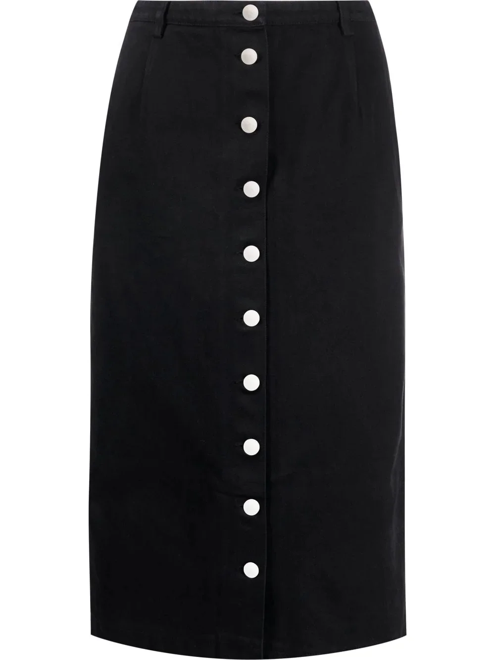 button-down midi skirt black cotton button fastening high waist mid-length Made in Italy Composition Cotton 100% SIZE & FIT Model measurements Height 5 ft 10 in(1.79 m) Bust/Chest 33.07 in(84 cm) Hips 35.82 in(91 cm) Waist 24.01 in(61 cm) FittingInformation This piece fits true to size. We recommend you get your regular size Designed to be fitted at the waist and hips, loose over the leg Made with a mid-weight non-stretch fabric Washing instructions Machine Wash