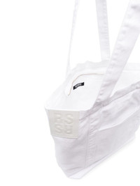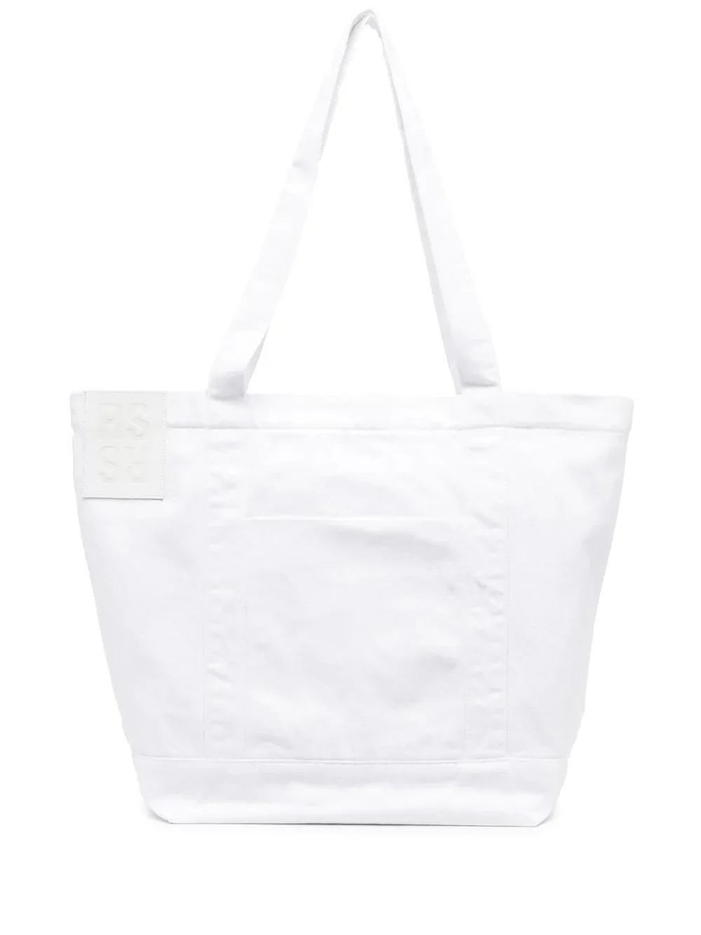 cotton tote bag white cotton-leather blend logo patch to the side two rounded top handles main compartment Made in Italy Composition Outer: Cotton 100%, Leather 100% SIZE & FIT Model measurements Height 5 ft 10 in(1.79 m) Bust/Chest 33.07 in(84 cm) Hips 35.03 in(89 cm) Waist 24.4 in(62 cm) Measurement DEPTH 82.67 in(210 cm) HANDLE 12.99 in(33 cm) HEIGHT 14.96 in(38 cm) WIDTH 20.47 in(52 cm) Washing instructions Machine Wash