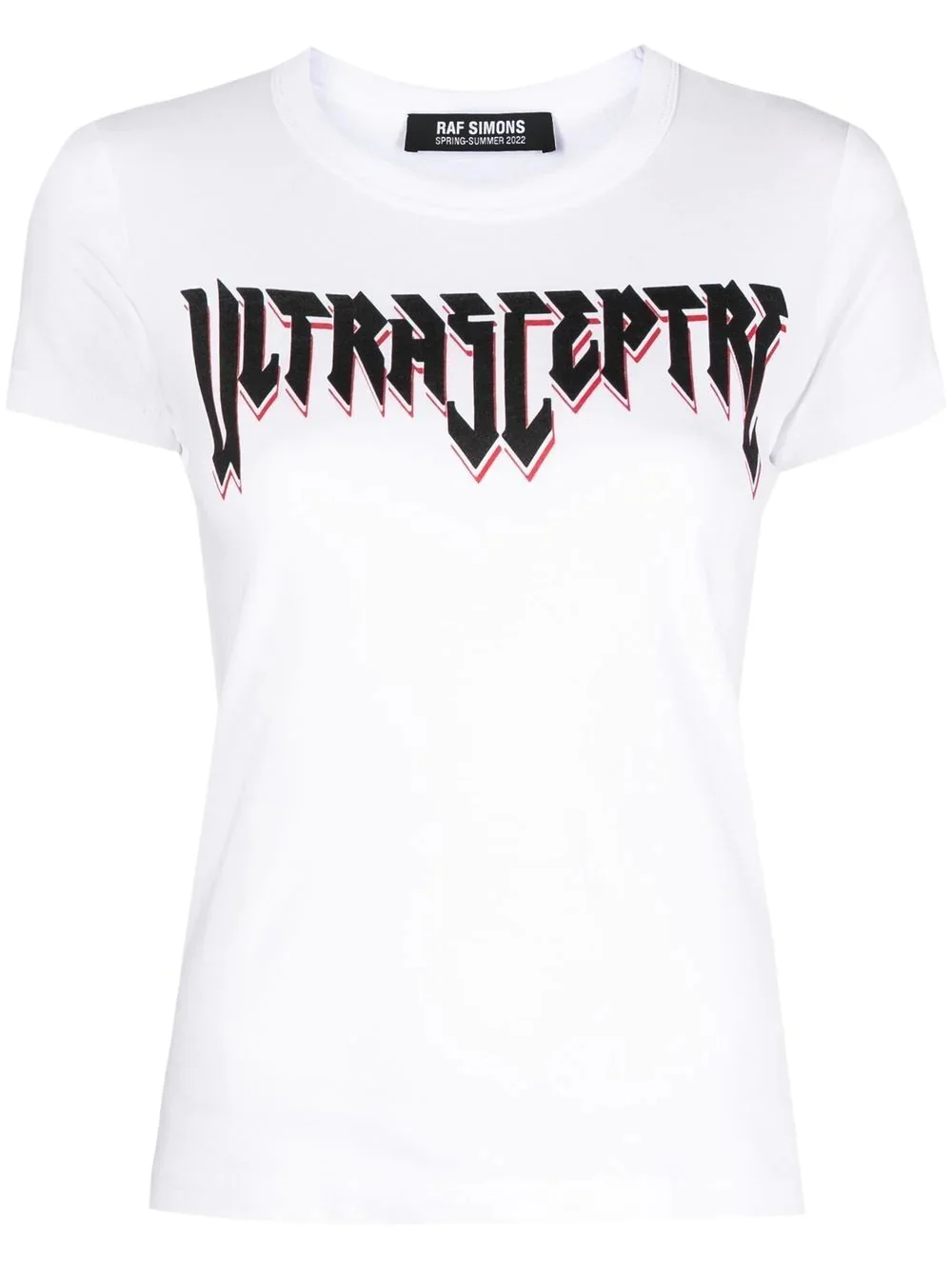 graphic-print cotton T-shirt white/black cotton text print graphic print to the front graphic print to the rear crew neck short sleeves straight hem Imported Composition Cotton 100% SIZE & FIT Model measurements Height 5 ft 11 in(1.8 m) Bust/Chest 31.49 in(80 cm) Hips 35.43 in(90 cm) Waist 25.19 in(64 cm) FittingInformation This piece fits true to size. We recommend you get your regular size Cut for a slim fit Made with a mid-weight fabric Washing instructions Machine Wash