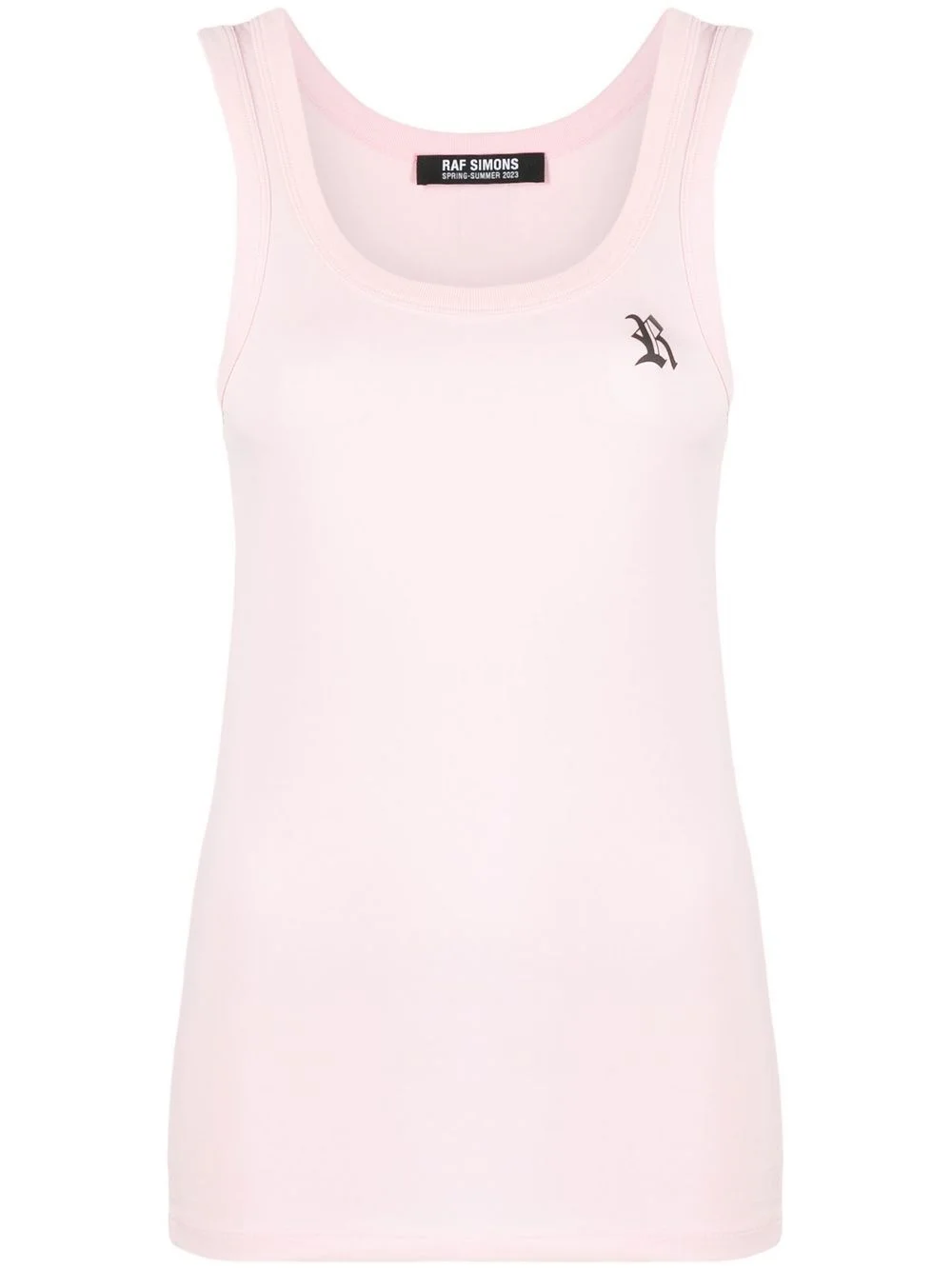 logo-print cotton tank top Raf Simons punctuates this cotton candy-pink tank top with its initials: they're printed at the chest for a subtle hit of branding. Imported Composition Cotton 100% SIZE & FIT Model measurements Height 5 ft 10 in(1.78 m) Bust/Chest 30.7 in(78 cm) Hips 34.64 in(88 cm) Waist 23.22 in(59 cm) Measurement BUST 29.13 in(74 cm) LENGTH 22.83 in(58 cm)