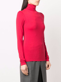 roll-neck jersey top cherry red stretch-design roll neck long sleeves straight hem Imported Composition Micromodal 95%, Spandex/Elastane 5% SIZE & FIT Model measurements Height 5 ft 10 in(1.78 m) Bust/Chest 31.49 in(80 cm) Hips 36.22 in(92 cm) Waist 25.59 in(65 cm) FittingInformation This piece fits true to size. We recommend you get your regular size Cut for a slim fit Made with a mid-weight stretch fabric Washing instructions Hand Wash