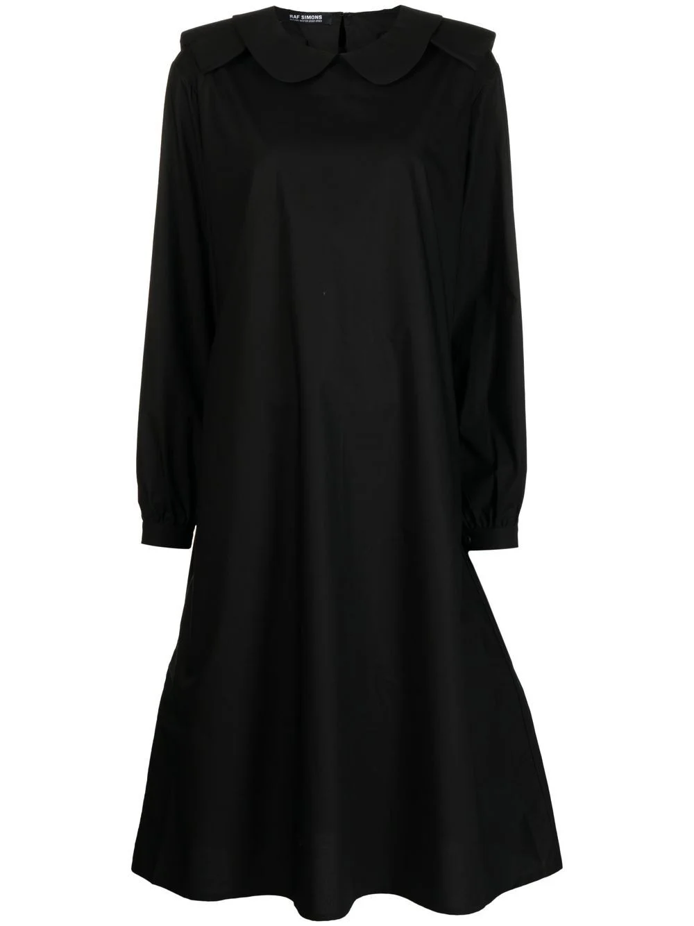 rounded-collar midi dress Raf Simons takes a pared-back approach with this midi dress. Detailed with a rounded collar and long sleeves, this dress is defined by its sleek black colourway and relaxed silhouette. Made in Italy Composition Cotton 100% SIZE & FIT Model measurements Height 5 ft 10 in(1.77 m) Bust/Chest 31.49 in(80 cm) Hips 35.43 in(90 cm) Waist 25.19 in(64 cm) FittingInformation This piece fits true to size. We recommend you get your regular size Cut for a loose fit Made with a lightweight non-stretch fabric
