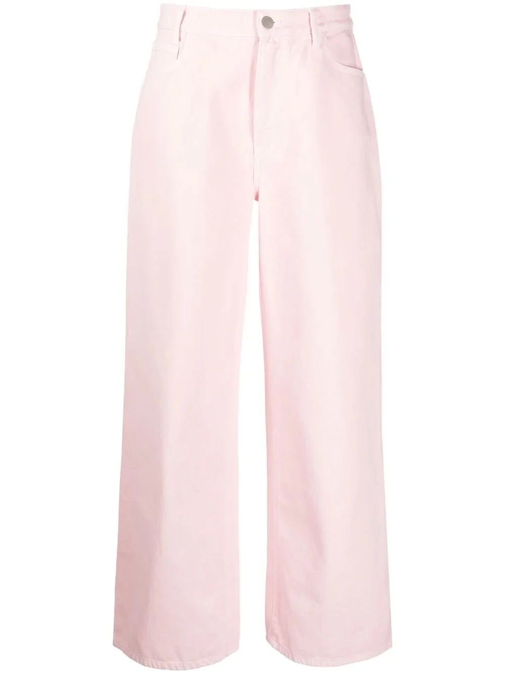 wide-leg denim jeans pale pink cotton logo patch to the rear wide leg high-waisted concealed fly and button fastening belt loops classic five pockets Made in Italy Composition Cotton 100% SIZE & FIT Model measurements Height 5 ft 10 in(1.77 m) Bust/Chest 35.03 in(89 cm) Hips 35.03 in(89 cm) Waist 23.62 in(60 cm) FittingInformation This piece fits true to size. We recommend you get your regular size Designed to be fitted at the waist and hips, loose over the leg Made with a mid-weight non-stretch fabric Washing instructions Machine Wash