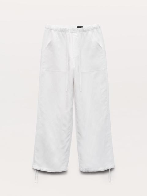 Workwear meets loungewear. These easygoing beach pants merge crisp cotton poplin and utilitarian details with the comfort of an elastic drawstring waist and a relaxed fit. Wear them wherever summer's spontaneous adventures take you. Size & Fit • Mid rise, relaxed fit • Fits true to size • Size Small: 12" front rise, 28.5" inseam, 21" leg opening • Model is 5'9" wearing size small Features & Details • 100% cotton • Dry clean only • Elastic interior waistband with self drawstring • Faux horn buttons at back pockets • Cotton tape at pant hem • Unlined • Pull-on elastic waistband with a drawstring • Front and back patch pockets • Imported Product ID: WAW25P70078107