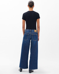 The Aiden. Low-rise, wide-leg jeans cut for a relaxed fit to fall around the ankle. Crafted from our Vintage Stretch denim for a broken-in look & feel with a comfortable touch of stretch. In Rhinebeck, a dark indigo wash. Size & Fit • Low rise • Wide leg • Fits true to size • Size 26: 9.25" rise, 30" inseam, 23.5" leg opening • Model is 5'9" wearing size 24 Features & Details • 69% cotton, 18% lyocell, 11% viscose, 2% spandex • Vintage Stretch Denim in Rhineback, a dark indigo wash • Machine wash cold inside out on delicate & lay flat to dry • Color may bleed • Signature dagger buttons & branded washer rivets • Zip fly with button closure • Five-pocket silhouette • Imported Product ID: RJ4325F1SRH