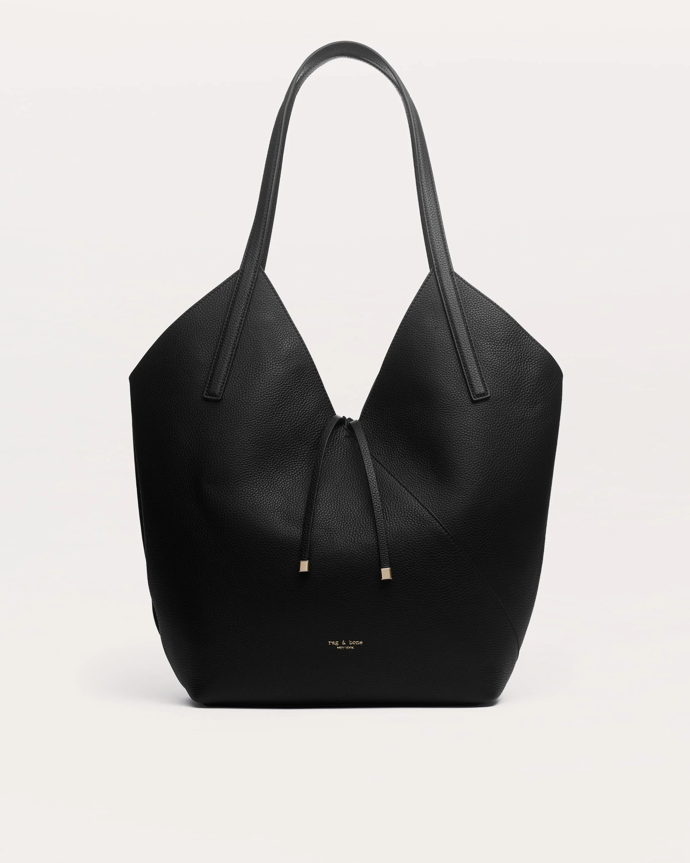 Introducing Alix, our sculptural new silhouette. Crafted from pebbled leather, this oversized tote bag is defined by the fresh dimension of its distinctive angular cut, with an open top that fastens using metal-tipped leather ties. The long, slim handles allow you to carry it by hand or slung over your shoulder. For additional versatility, the handbag includes an interior zipped pouch that detaches to double as a standalone piece. Size & Fit • Dimensions: 10" x 5" x 12" • Handle drop: 15" Features & Details • 100% leather • Open, with metal-tipped leather ties • Interior zipped pouch that detaches as standalone piece • Dust bag included • Professional leather clean • Imported Product ID: LE100823