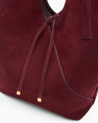 Meet Alix, our sculptural new silhouette. Updated for the season in soft suede, this oversized tote bag is defined by the fresh dimension of its distinctive angular cut, with an open top that fastens using metal-tipped leather ties. The long, slim handles allow you to carry it by hand or slung over your shoulder. For additional versatility, the handbag includes an interior zipped pouch that detaches to double as a standalone piece. Size & Fit • Dimensions: 10.3" x 4.5" x 12.2" • Strap length: 15" Features & Details • 100% cow suede • Professional clean only • Tie closure • Dust bag included • Imported Product ID: SD100823