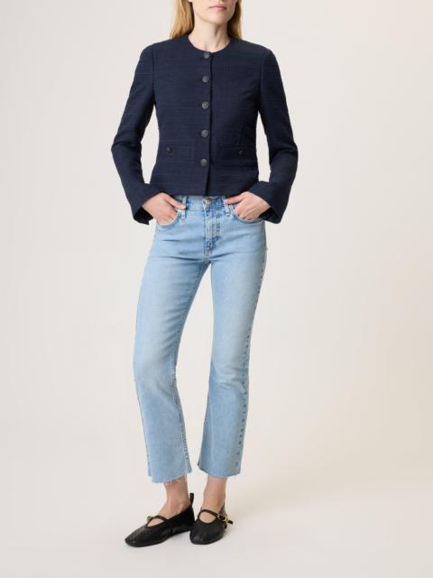 Structured like a blazer, soft like your favorite cardigan. The Amaya Blazer is tailored from a cotton blend with contrast buttons and tonal pockets. Cropped and polished for modern edge. Size & Fit • Slim fit blazer • Size 4: Front length 21 1/4", back length 20", chest 36 3/4", sleeve length 32" • Model is 5'9" wearing size 2 Features & Details • 52% Cotton, 48% Polyester • Lining: 51% Viscose, 49% Polyester • Signature dagger button closure • Welt pocket with button • Dry clean only • Imported Product ID: WAW25S4007OP04