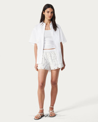 Summer standouts. These easy throw-on shorts are crafted from floral-embroidered lace with cutouts that reveal their cotton poplin lining. With their 3" inseam and elastic waistband, the comfortable pair is perfect for wearing with sandals and the matching Amy Lace Poplin Shirt or dressing up with heels and a blazer. Size & Fit • Low-rise • Classic fit • Fits true to size • Size Small: 10.5" front rise | 3" inseam | 27.75" leg opening • Model is 5'11" wearing size small Features & Details • Body: 100% polyester • Lining: 100% cotton • Pull-on elastic waistband • Allover embroidered lace • Fully lined • Machine wash cold & tumble dry low • Imported Product ID: WAW25P90080108