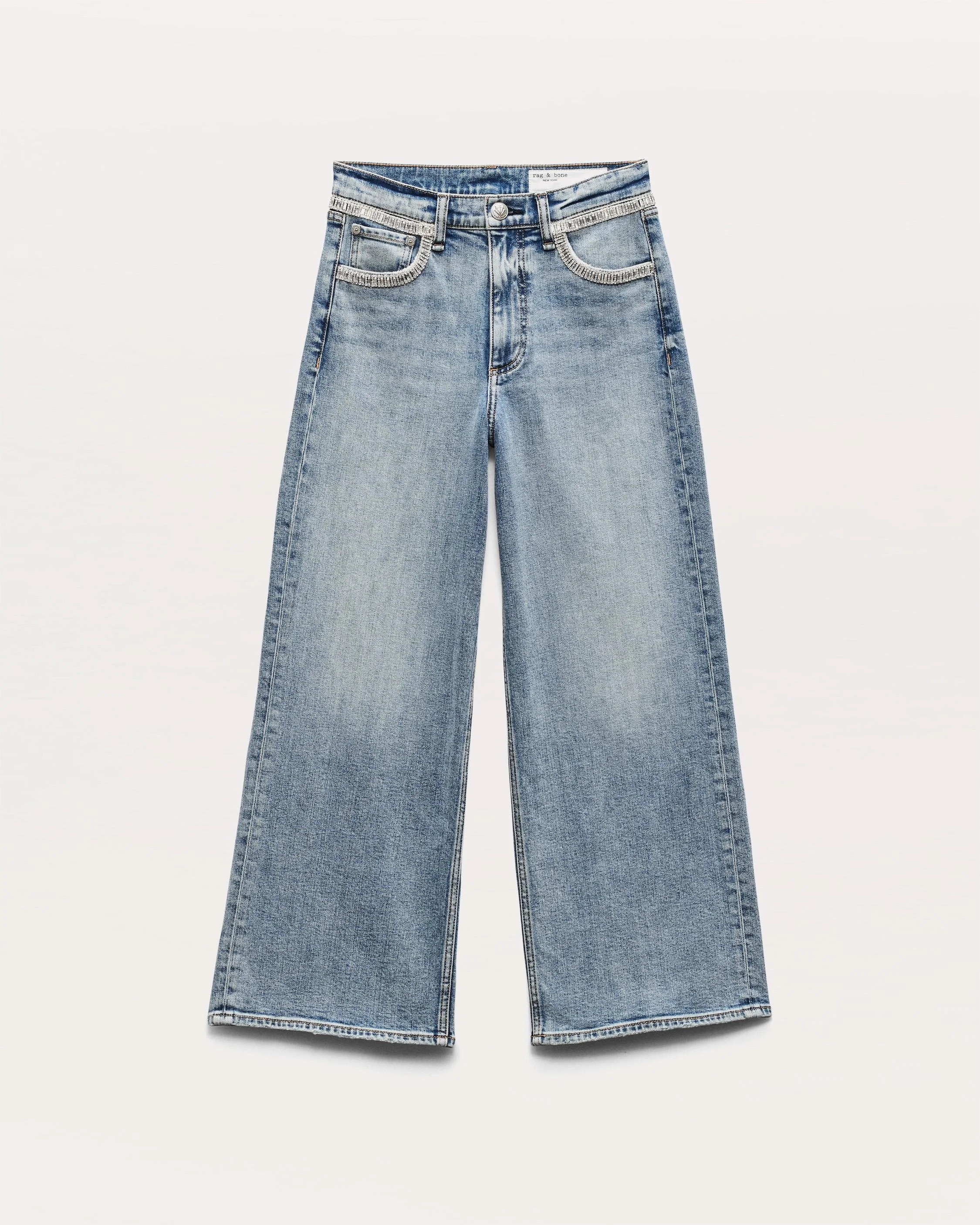 The Andi. High-waist jeans with a wide, cropped leg that hits at the ankle. Crafted from our Vintage Stretch denim for a timeworn look with added comfort. In Pacific Jewel, a light-medium indigo wash embellished with hand-sewn round- and baguette-cut crystals at the pockets and waist. Size & Fit High-rise, wide leg, ankle length Size 26: 12" front rise, 27" inseam, 21 3/4" leg opening Model is 5'10" wearing size 25 Features & Details 99% Cotton, 1% Spandex Vintage Stretch Denim in Pacific Jewel, a light-medium indigo wash embellished with hand-sewn round and baguette-cut crystals at the pockets and waist Hand wash only Signature dagger shank button at center front with a zipper fly, metal rivets Five-pocket silhouette Imported Product ID: WDD25S2914VSPJ