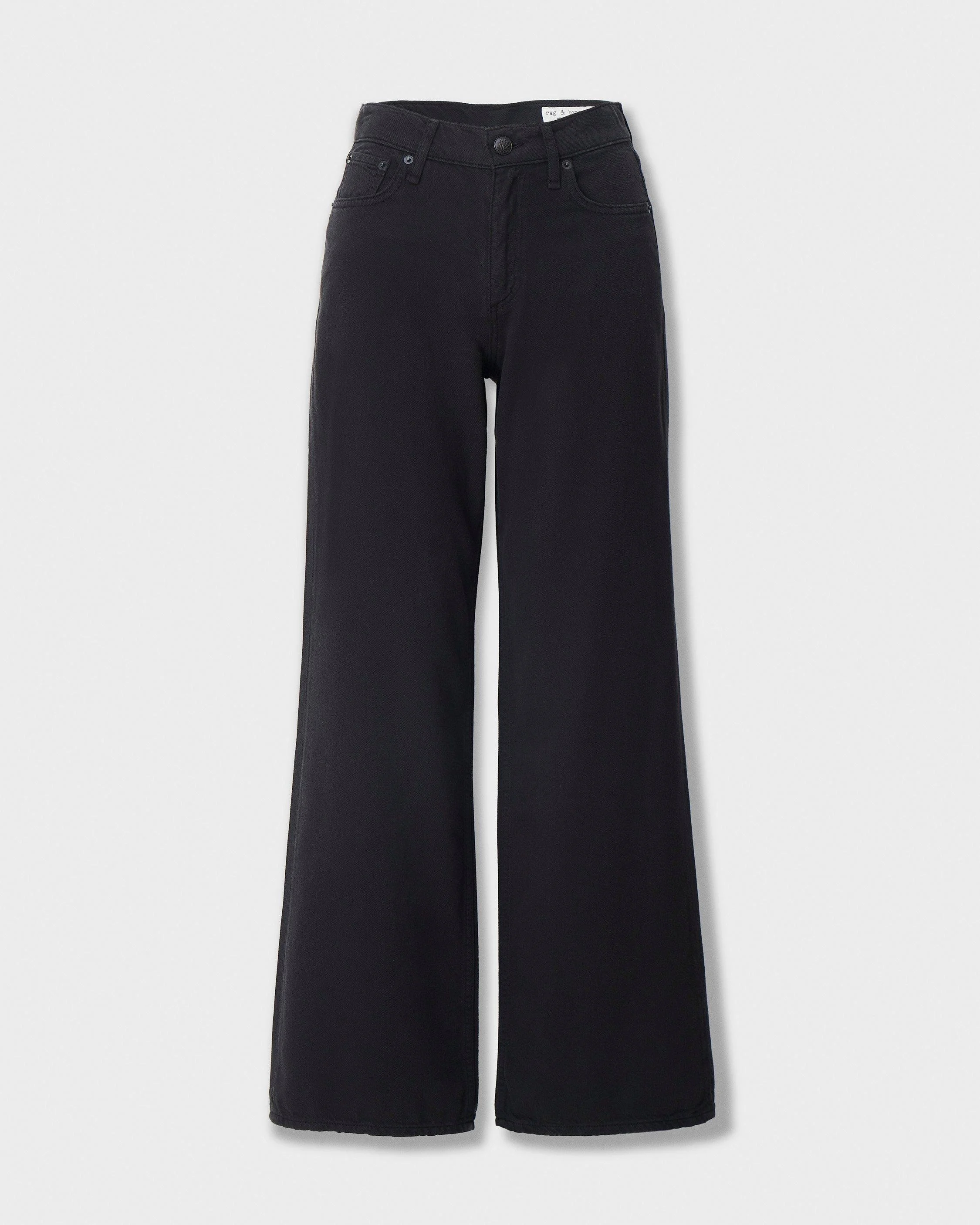 The Andi. High-waisted jeans with a slender thigh and a wide, full-length leg. Crafted from our Featherweight denim that's supremely soft and super light, with an easy drape. Feels airy & effortless. In Black. Size & Fit • High-rise • Full length • Slender thigh with a wide leg • Fits true to size • Size 26: Rise 11", inseam 32", leg opening 22.75" • Model is 5'10" wearing size 24 Features & Details • 65% cotton, 35% lyocell • Featherweight Denim in Black • Zip fly with a signature dagger button closure • Signature rivets • Five-pocket jean • Machine wash cold inside out on delicate & hang to dry • Color may transfer • Imported Product ID: RJ0426S1FBL