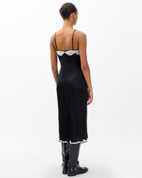 A slip with some attitude. This twist on the classic silhouette is cut from lightweight satin that moves like liquid and is trimmed with custom lace embroidery at the bodice and hem. The midi length hits just right to wear with heeled sandals or high boots. Size & Fit • Classic fit • Fits true to size • Size 4: Front length 43.75", chest 33.5", sweep 39.5" • Model is 5'9" wearing size 2 Features & Details • 100% polyester • Dry clean only • Lace embroidery at top bodice • Adjustable straps • Invisible zipper & hook and eye at side seam • Unlined • Imported Product ID: RA7525F3MFR
