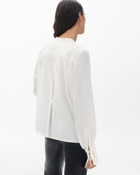 Easy and chic. This pleated blouse is a lightweight silhouette with a loose yet elegant drape that falls around the hips. Feminine ties at the neck and cuffs can be knotted or worn undone for an effortless look. Made for days at the office that lead to dinner plans at night. Size & Fit • Fits loose to body • Fits true to size • Size small: Back length 23.25", chest 41", sweep 41.25", sleeve length 33.25" • Model is 5'8" wearing size small Features & Details • 100% polyester • Hidden button front closure • Exposed faux horn buttons at cuffs • Front and back inverted box pleats • Ties at cuffs • Unlined • Machine wash cold & tumble dry low • Imported Product ID: RA4K25HSMSW