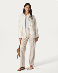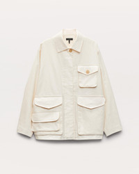 The perfect transitional jacket. Made for the season's unpredictable weather, it's cut for a longer, slightly boxy fit from a lightweight linen-cotton blend that's specially treated to resist water. Hidden buttons at the front and plenty of practical utility pockets complete its look. Take your typical size for its intended looser look, or size down for a closer fit. Size & Fit • Boxy fit • Fits true to size • Size Small: front length 29.5" | back length 27.75" | chest 46" | sleeve length 33" • Model is 5'11" wearing size small Features & Details • 52% linen, 48% cotton • Button closure • Faux horn buttons at center front, sleeve cuffs, and pockets • Fully lined • Chest patch pocket with flap, hip patch pockets with flaps, additional patch pocket at right hip pocket • Machine wash cold & tumble dry low • Imported Product ID: WAW25P20094709