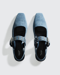 The Astra Slingback. A rag & bone favorite in a new context. This flat style retains its quintessential tapered square toe, but is secured with a slingback and a custom Mary Jane strap all in our tried-and-true denim. Size & Fit 0.7" Polished stacked leather heel Features & Details Upper material: 100% Cotton Outsole material: 100% Cow Leather Lining: 100% Goat Leather Professional leather cleaner Tapered square toe, cotton denim Strap with custom double prong buckle & metal eyelets Hidden gore for ease of entry & comfort Leather outsole Imported Product ID: WFF24SF002UB2