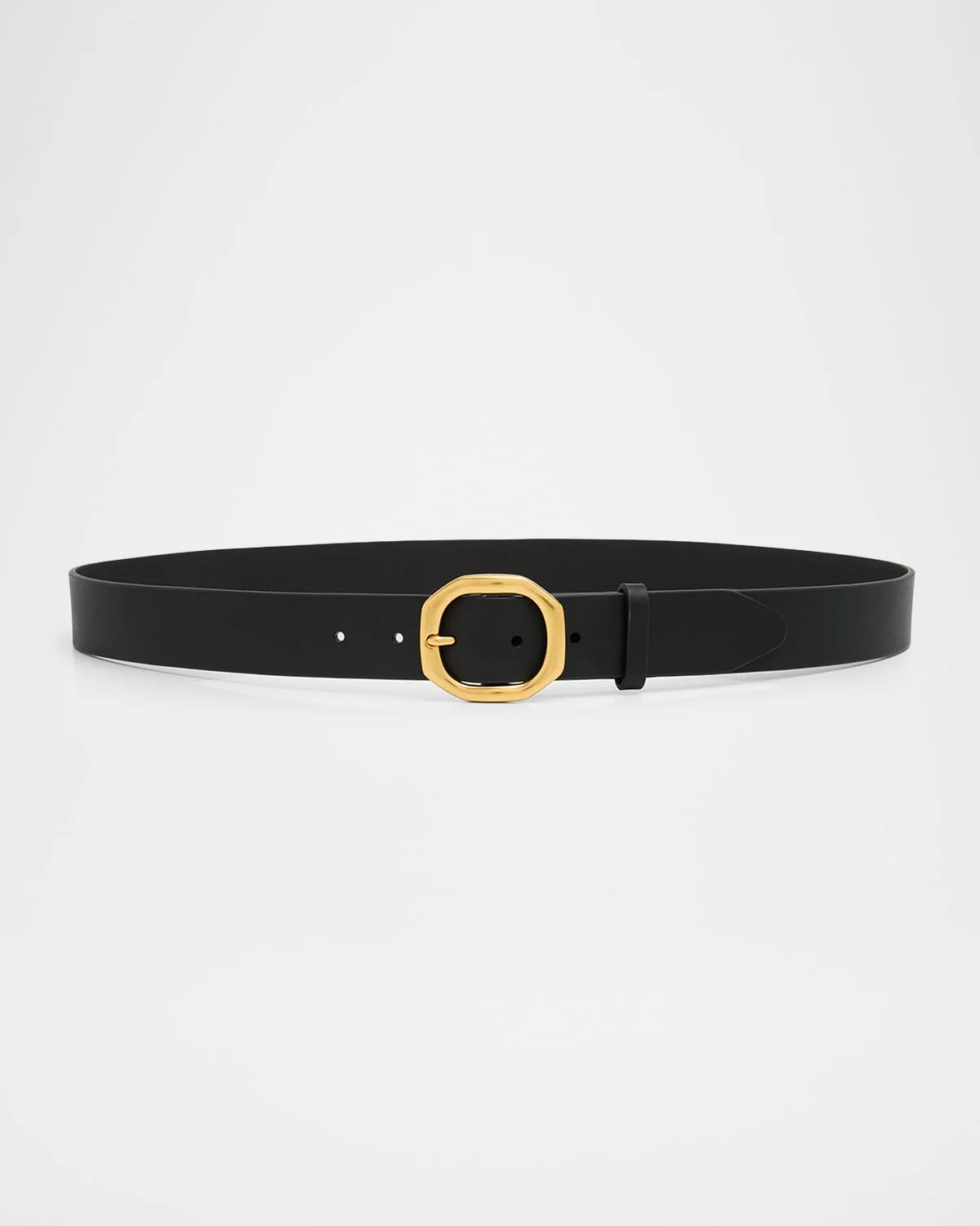 Crafted from Italianmilled leather, the Rag amp; Bone "Audrey" belt fastens with a rounded geometric buckle. Approx. 1.37"W Goldtone hardware Adjustable fastening Buckle closure Professional cleaning recommended Imported