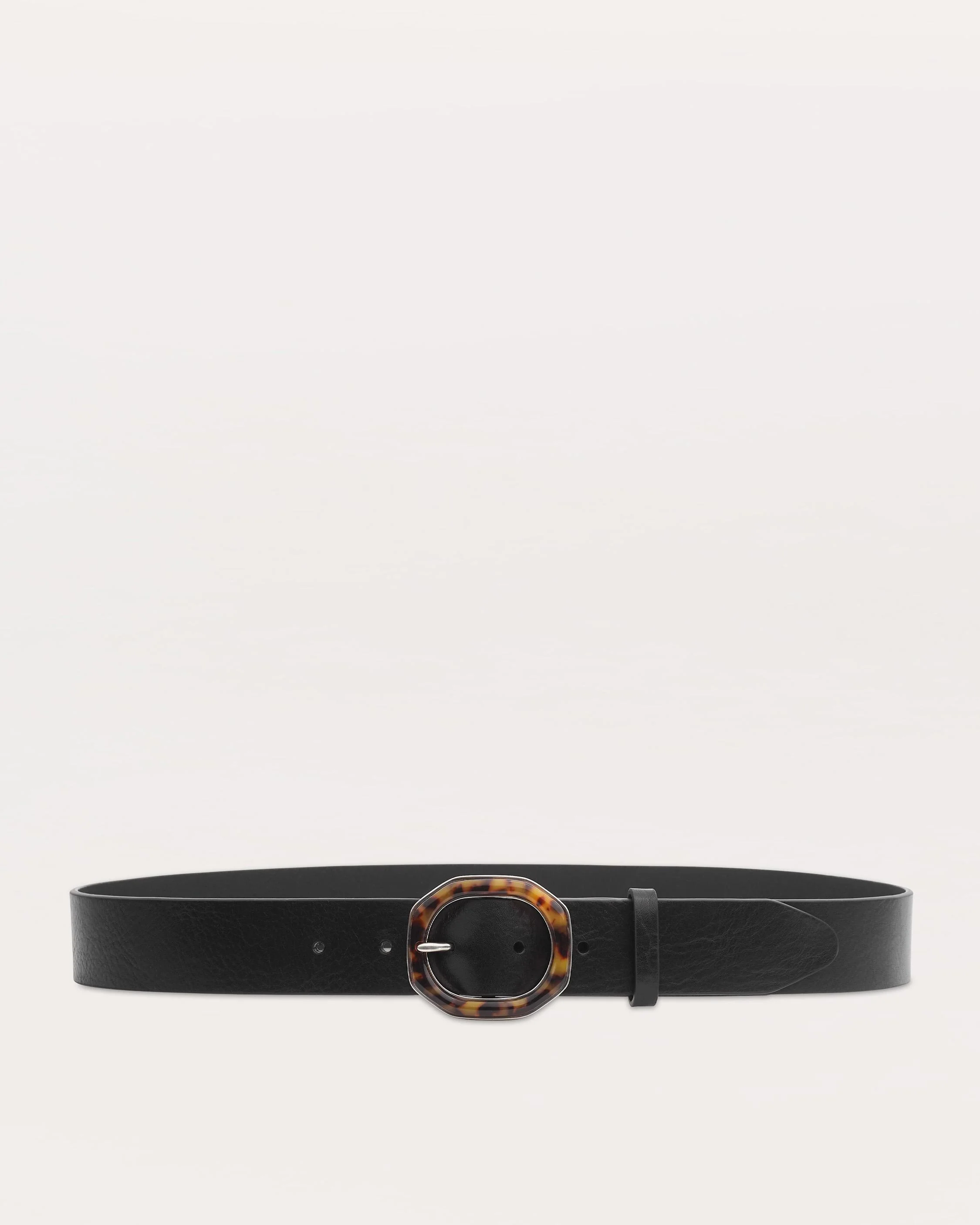 Made from Italian-milled leather, this wear-with-anything belt secures with a rounded geometric buckle inlaid with polished, tortoiseshell-patterned resin. Size & Fit Width: 1.37" Length: XS 35.8", S 37.7", M 41.7", L 45.6" Features & Details 100% Cow Leather Professional leather cleaner Silver buckle hardware and closure Leather trims Imported Italian leather Product ID: WJW25SB1043LE43