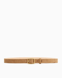 A plush Italian suede belt featuring lacquered edges and a 25mm width. Light-brushed gold detailing. Size & Fit XS: 30'', S: 32'', M: 36'', L: 39.5'' Features & Details 100% Italian Cow Suede Professional leather clean Classic boyfriend hardware in light brushed gold finish with discreet engraved logo The Baby Boyfriend is the 25mm version of the iconic Rag and Bone boyfriend belt Made in England Product ID: WJW20H1004BA04