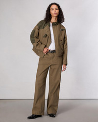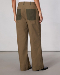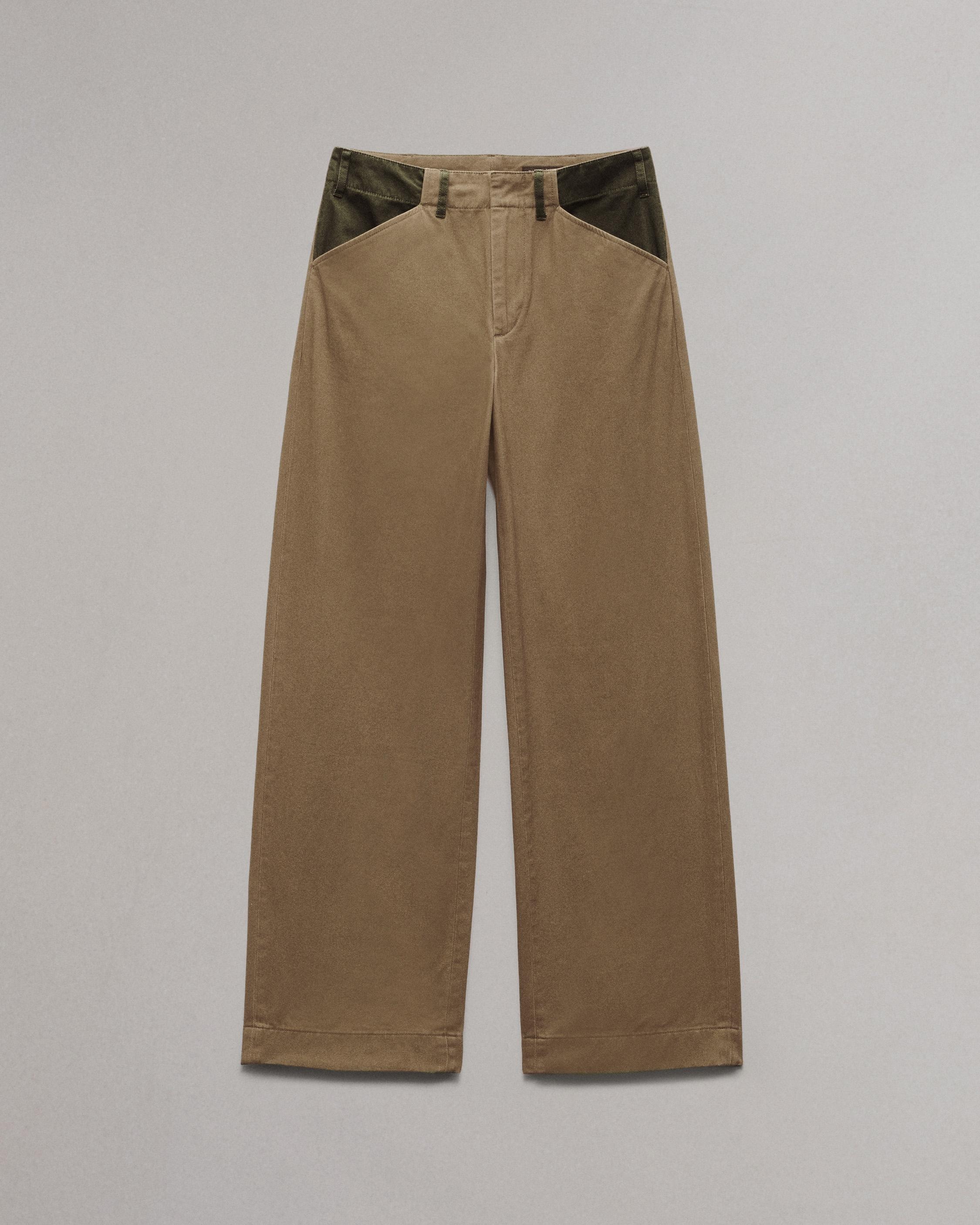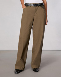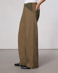 These mid-rise, wide-leg pants are crafted from soft yet structured cotton twill for a workwear-inspired take on tailoring. Contrast pockets and belt loops enhance their utilitarian appeal. Size & Fit Mid rise wide leg, full length Size 4: 11 1/4" front rise, 31 1/2" inseam, 20 3/4" leg opening Model is 5'9" wearing size 25 Features & Details 100% Cotton Pocketing: 100% Cotton Machine wash cold with like colors, do not use bleach, tumble dry low, low iron if needed Tonal color combo at pockets and belt loops, tonal rb embroidery on back pocket, unlined Zipper, hook and bar closure Slant pockets, back patch pockets Imported Product ID: WAW24H70133913