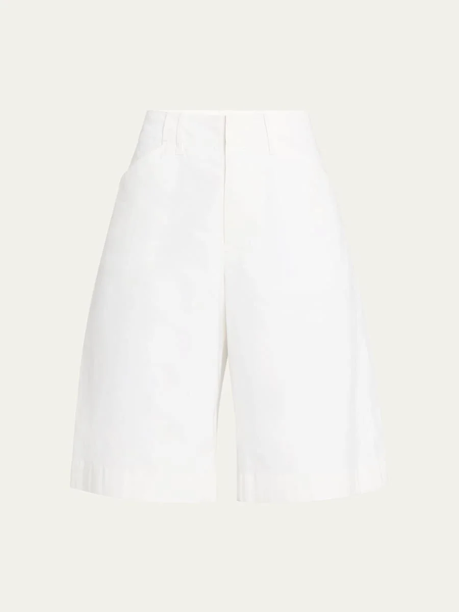 Rag & Bone "Banks" knee-length linen-blend shorts Approx. 11.75" inseam High rise Four-pocket style Wide legs Hook/zip fly; belt loops Linen/viscose/spandex Unlined Dry clean Imported Online Inquiries: BGS21_T6KFT| Store Inquiries: #4996316