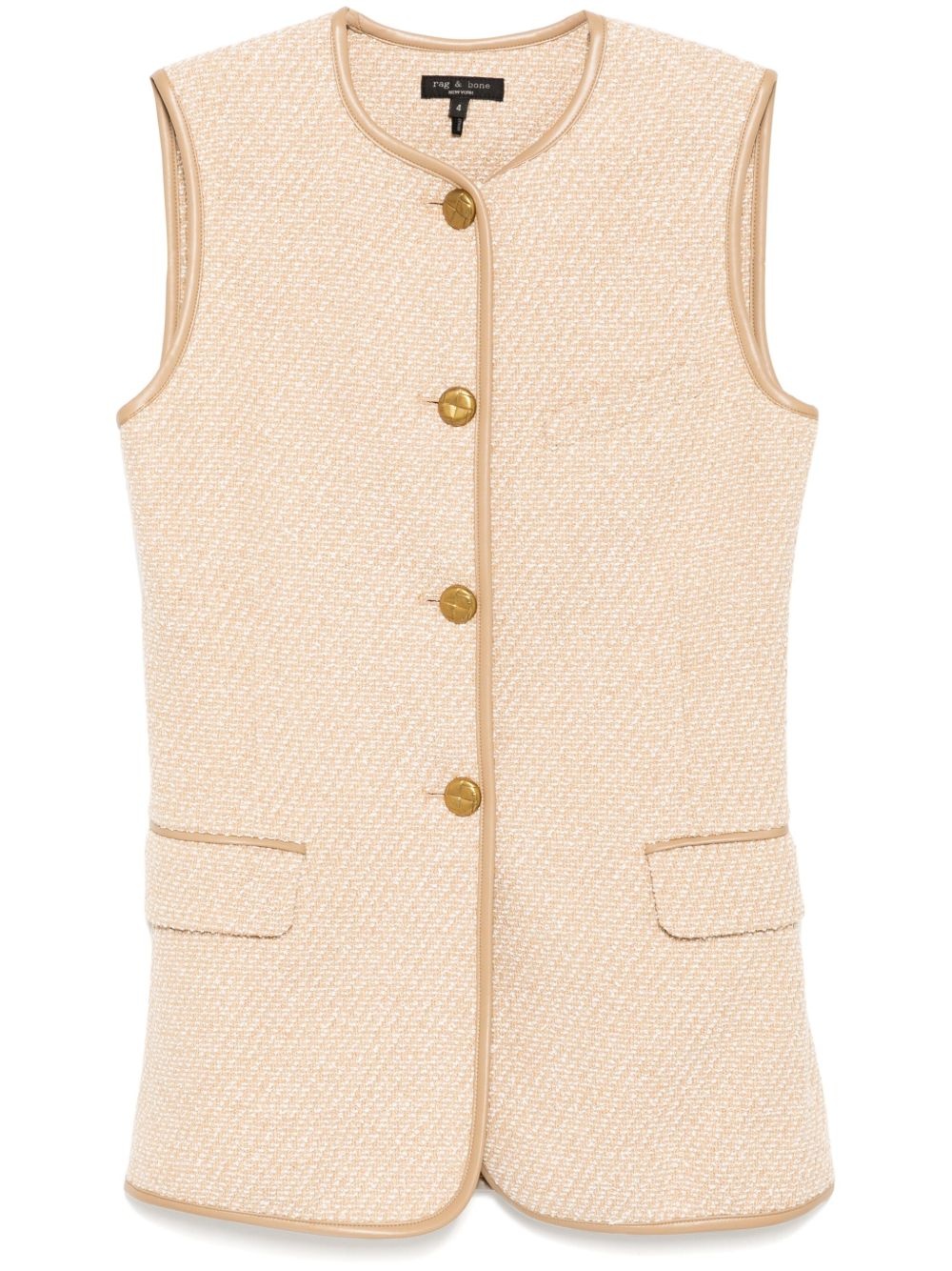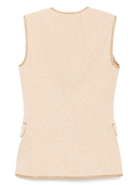 tweed vest Highlights - Brown - Front button fastening - Sleeveless - Two front flap pockets Imported Composition Outer: Cotton 56%, Polyester 23%, Acrylic 15% Other Fabrics 4%, Elastane 1%, Metallized Polyester 1%